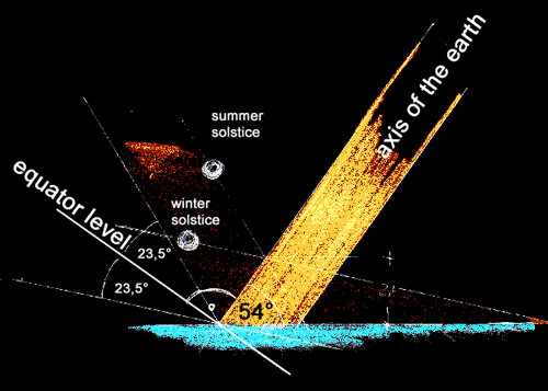 Die Neigung der Erdachse beträgt am Spurnpoint circa 54° zur